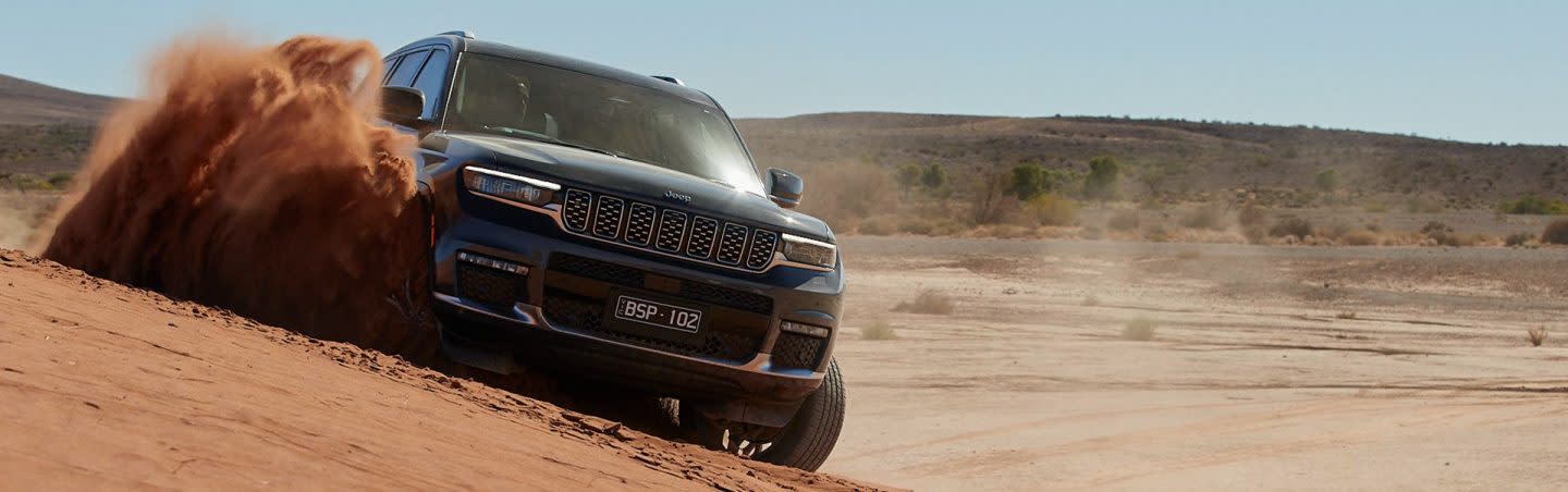 Traction is key when off-roading, with every wheel working to drive this full-size SUV forward. Jeep® 4x4 systems help to ensure the right tyre has traction when it’s needed.